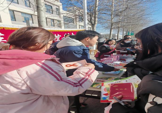 12月1日中午,诚邀城北区疾控中心、西宁市妇幼保健院、西宁市健康教育所等社会力量来校联合开展艾滋病日健康教育宣传活动。活动以现场悬挂主题宣传横幅、摆放艾滋病健康教育展板、发放健康教育宣传彩页、手册和计生用品、现场咨询、趣味套圈活动的方式开展。广大师生主动参与活动的热情高涨,学校艾滋病防治宣传工作卓有成效,获得广大师生的认可。